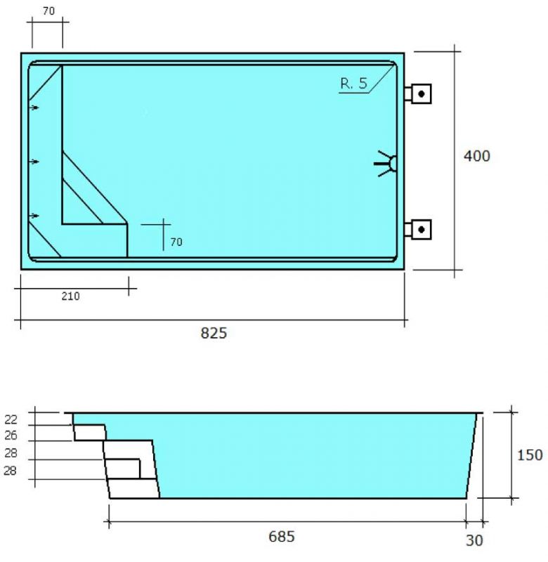 Les piscines d'Aquitaine a CABANAC ET VILLAGRAINS , vous présente le Modéle TOSSA cette très belle piscine coque polyester avec sa banquette immergé permet de vous prélasser essaiment ou bien de faire quelques mouvement de nage.
